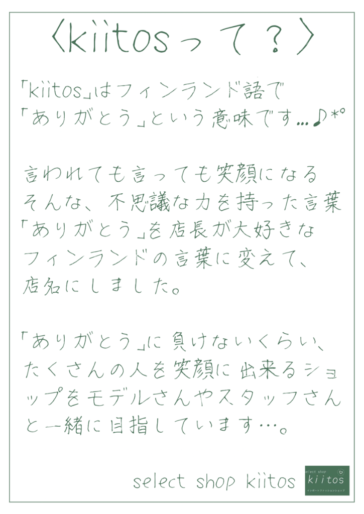 これからもselect shop kiitosを何卒よろしくお願い申し上げますm(_ _"m)