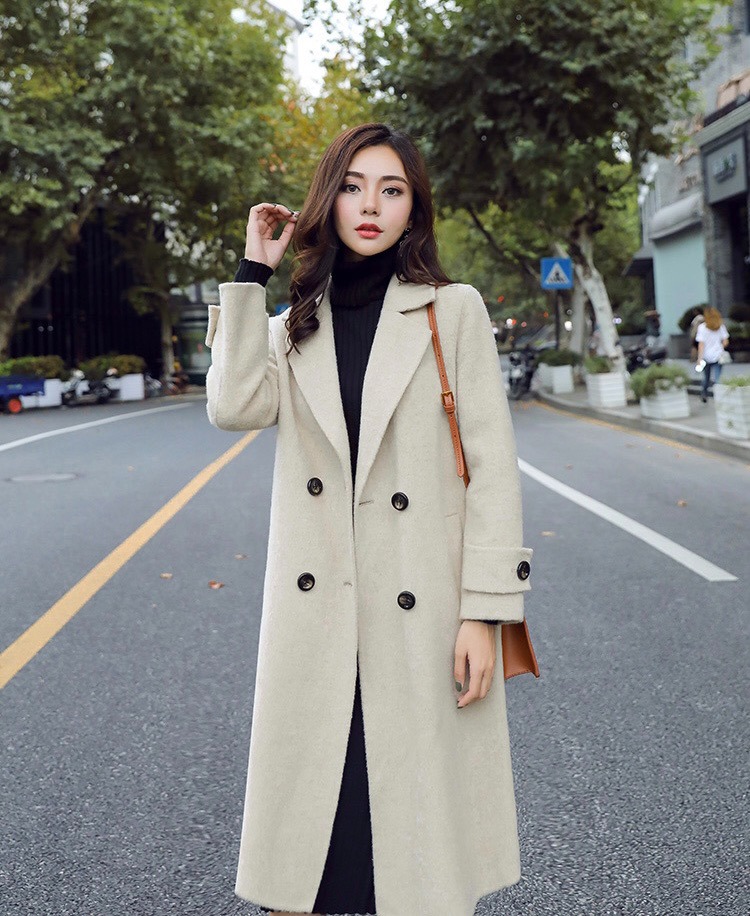 スラっと下にまっすぐ広がるように伸びているので、体型カバー効果もあり、これほどまでに女性のラインを美しく表現してくれるコートは日本ではなかなかないんじゃないかなと思います。