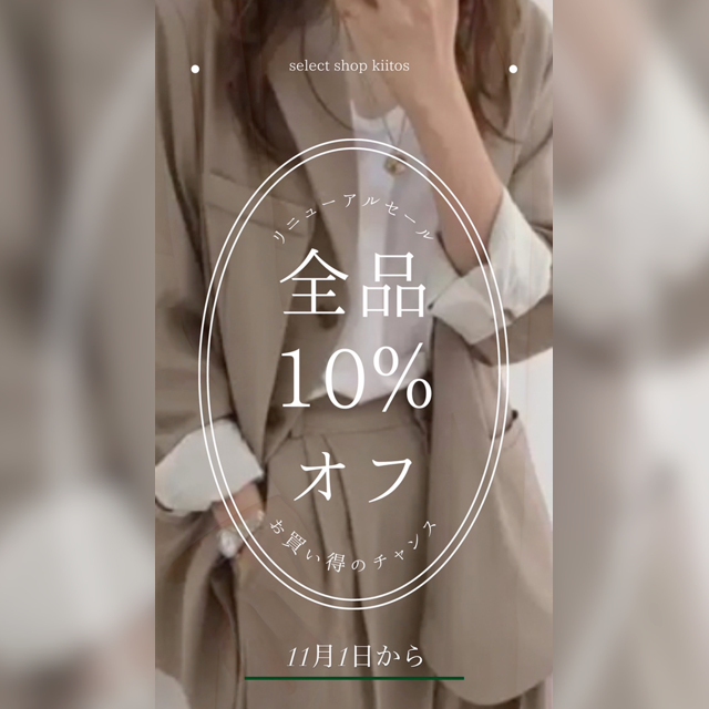 話がそれましたが、11月1日から11月14日までがsale期間となりますので是非この機会にselect shop kiitosに遊びに来てくださいね。