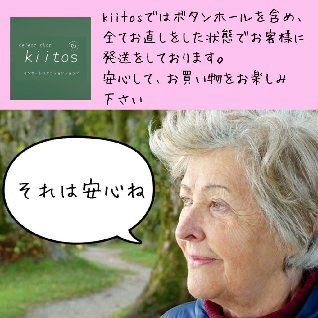 kiitosでは、お客様に満足していただくために、仮にメーカーから届いた商品でボタンホールが開いていなかった場合でも、ショップサイドできちんとボタンホールを整えてから発送しますので、どうぞご安心ください( ˘ω˘ )♡